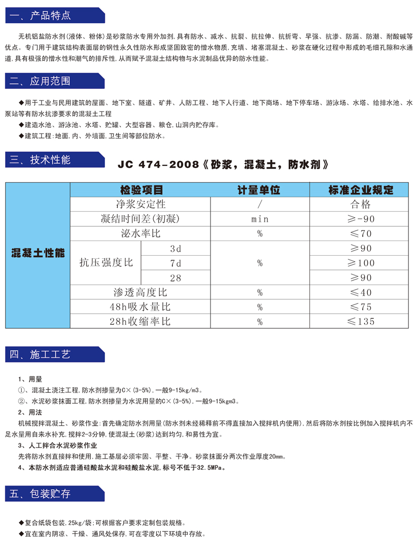 無機鋁鹽防水劑